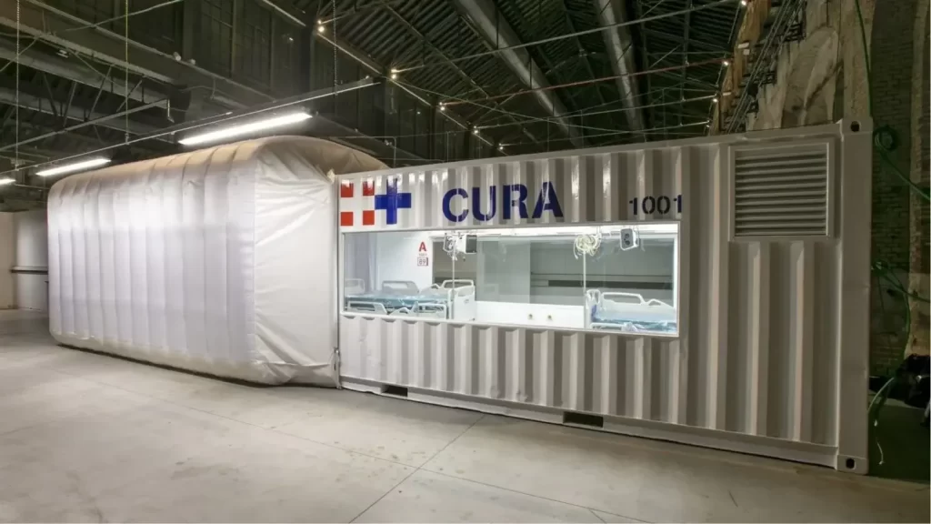 During the pandemic, healthcare organizations and governments transformed shipping containers into ICUs and critical-care units to support overburdened hospital systems — and the trend has continued. Designed by teams of engineers, designers, and medical professionals, they can be built quickly and offer all the safety and necessary equipment of a traditional isolation ward. And thanks to their modular design, they can be placed in parking lots or open spaces, helping to bring care to communities without easy access to a traditional care facility. For example, this modified shipping container has been installed at a temporary hospital built within the Officine Grandi Riparazioni complex in central Turin. Designed by Carlo Ratti Associati and named Connected Units for Respiratory Ailments (CURA).