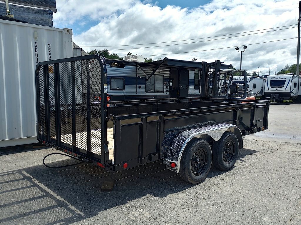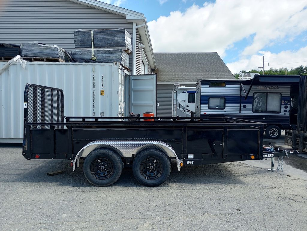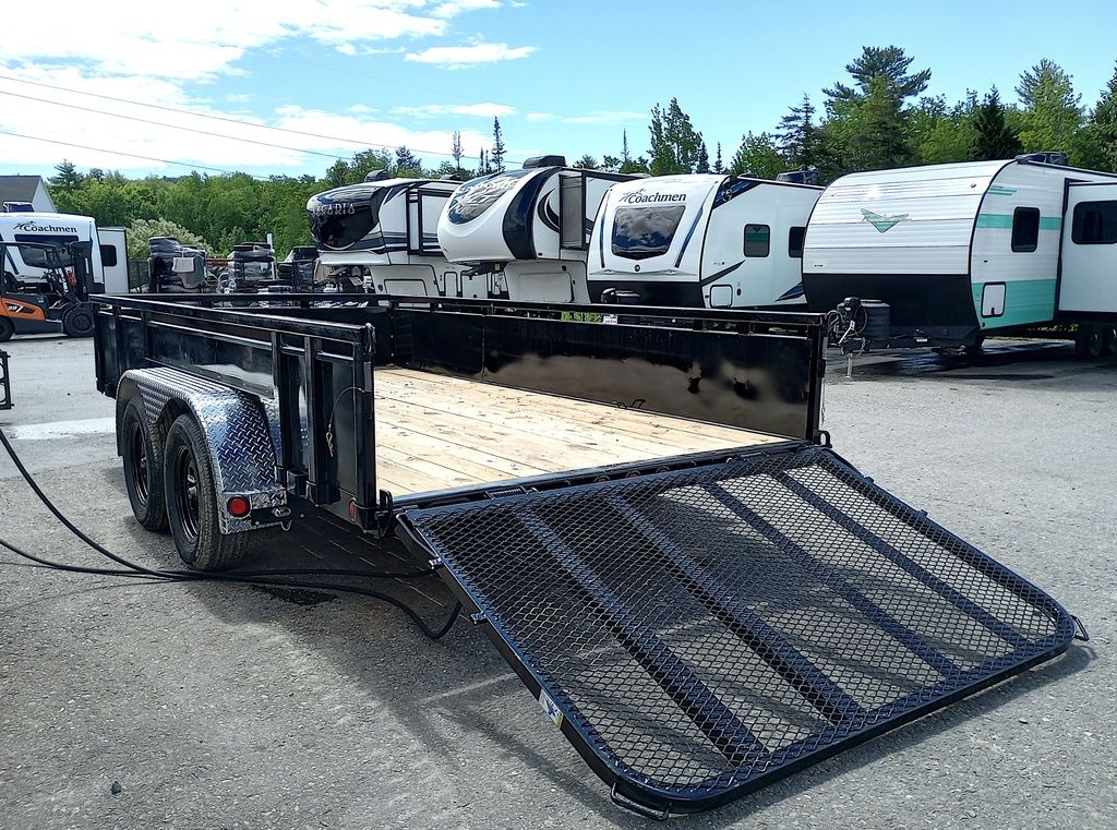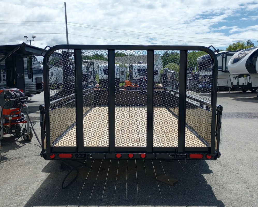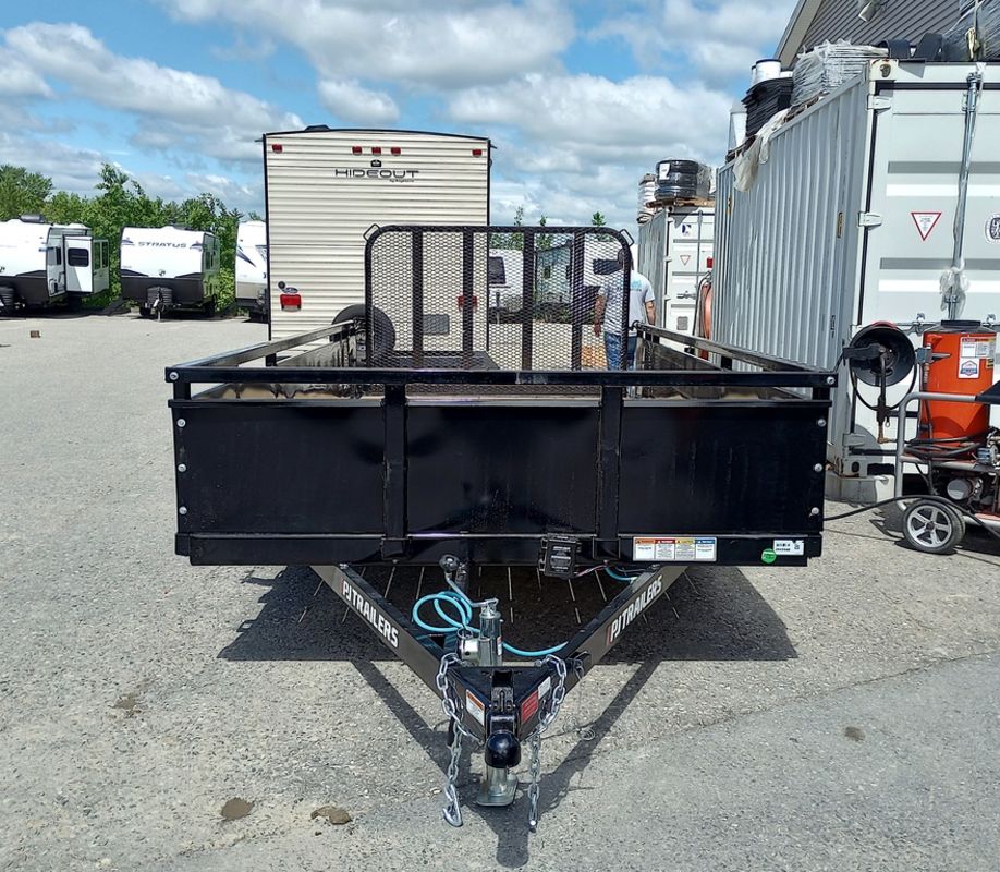2024 PJ Trailers 7×14 7K Powder Coated Open Utility w/Rear Ramp Gate, Solid Metal Side Walls, Spare Tire Mount.